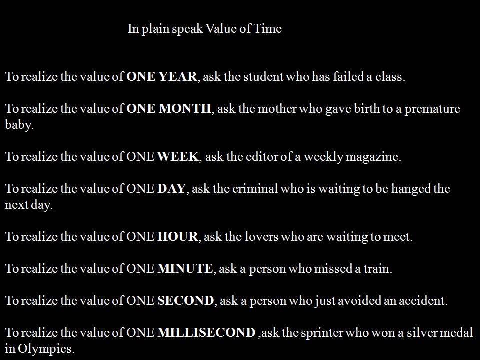 To Realize Lhe Value Of One Year Ask A Sludenl Who Failed Grade To Realize Ihc Value Of One Month Ask A Molhar Whu Gave Binh Lo A Premature Baby To